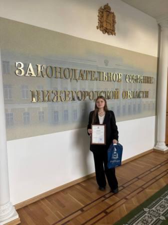 Традиционный для Законодательного Собрания НО, но такой волнительный для детей. Возможность высказать свою точку зрения по проблеме привлечения специалистов в сферу ЖКХ предоставилась ученице 10 класса МБОУ СОШ№2 г Шахунья Глушаковой Ксении. Она стала финалисткой областного конкурса и достойно защитила свою работу.